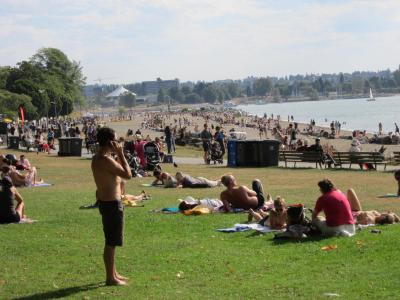 Am Wochenende habe ich mir mal den strand von Vancouver angeschaut, am letzten warmen Tag bis jetzt. Jetzt wirds kälter. ´Heute morgen bin ich bei 8° C zitternd zum Bus gegangen. Doch für die brasilianer war es noch viel kälter. Einer trug zwei dicke Pullover und 2 Paar Socken übereinander. Das fand ich dann aber doch ein bisschen übertrieben.